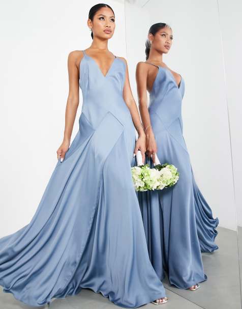 Asos bridesmaid dresses ASOS DESIGN Bridesmaid pleated tulle maxi skirt with ribbon waist in wine part of a set 8000 Lace Beads Bridesmaid tiered midaxi dress in dusty blue 17800. Sequin V Neck Fishtail Dress. Shop cheap bridesmaid dresses and bridal party.